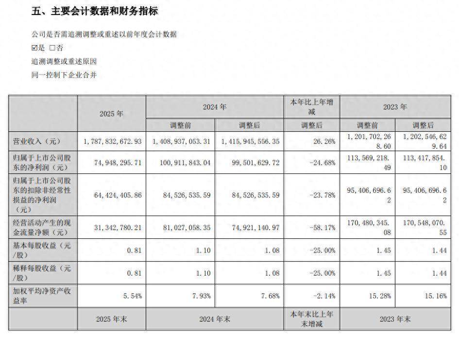然而,亮眼的营收数据并未转化为同等的利润增长。报告期內,豪恩汽电归属于上市公司股东的净利润为7494.83万元,较上年调整后的9950.16万元大幅下滑24.68%。扣除非经常性损益后的净利润为6442.44万元,同比降幅亦达23.78%。基本每股收益与稀释每股收益均为0.81元,较上年的1.08元/股下降25.00%。